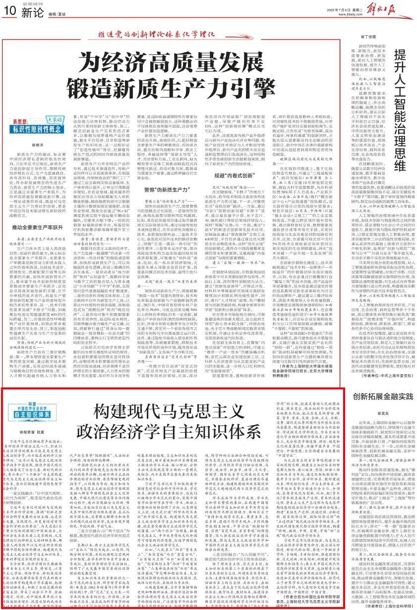 程恩富 陆夏:构建现代马克思主义政治经济学自主知识体系