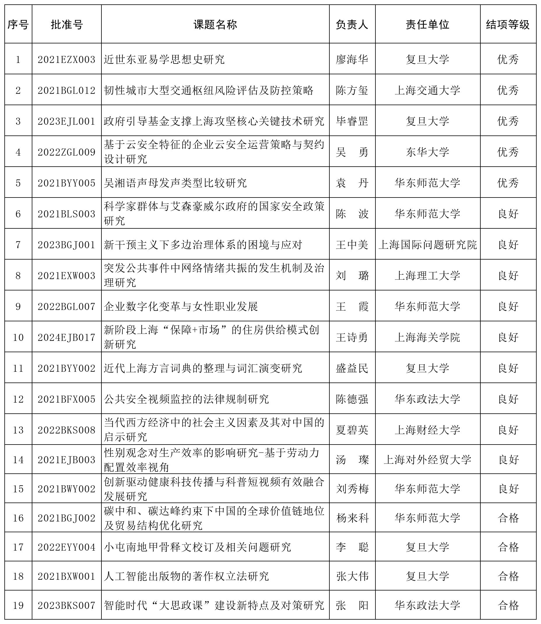 2026年1月,市社科规划办共办理22项课题结项申请。经专家鉴定,19项课题通过结项。现将结项情况公布如下: